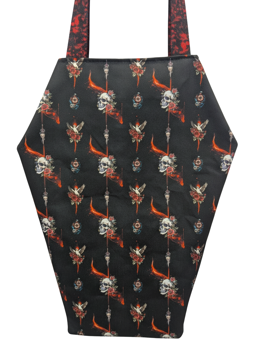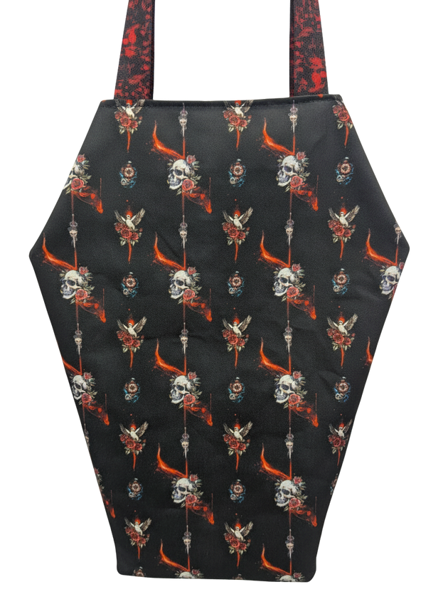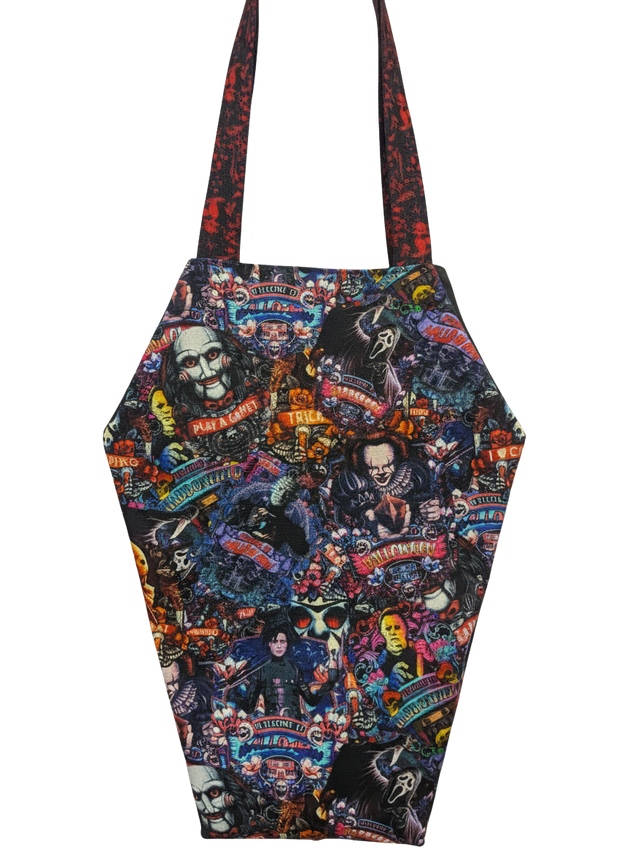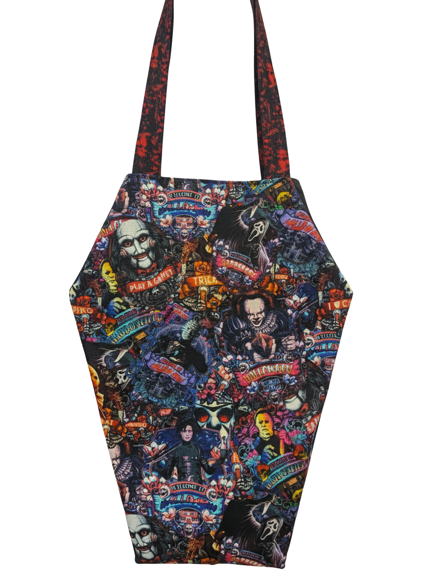 Coffin Tote Bags 13 inches long. Ready to hit the town in spooky style? The Coffin Tote Bags are the perfect accessory for any Halloween lover. With a spacious 13 inches, you'll have plenty of room for all your essentials (and maybe a few bats).