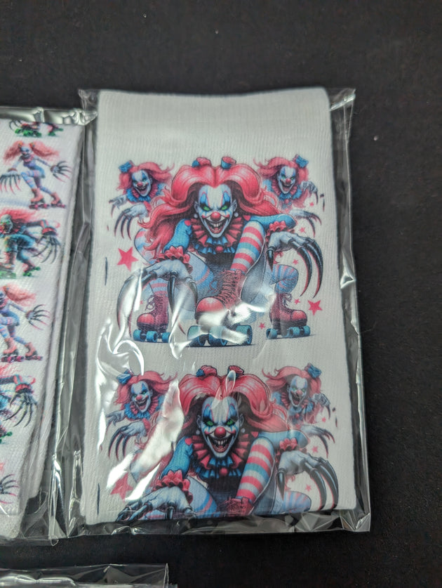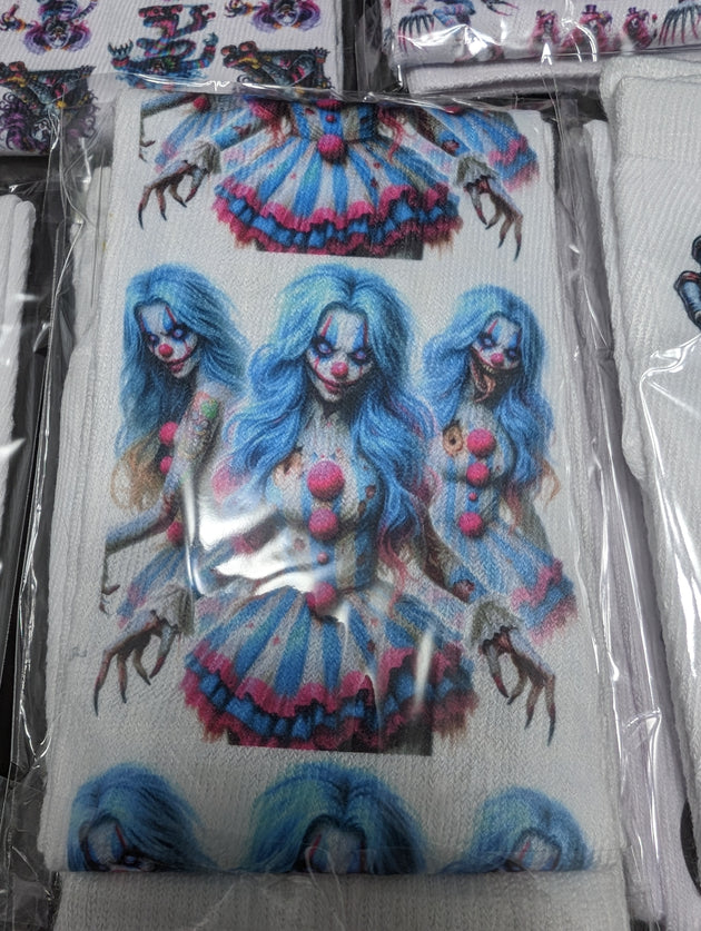 Put a killer spin on your sock collection with our Killer Clown Socks! These sublimated white socks are the perfect mix of creepy and playful, designed to add a bold twist to any outfit. Whether you're dressing up for Halloween, a horror-themed event, or just want to make your everyday style stand out, these socks are guaranteed to turn heads.