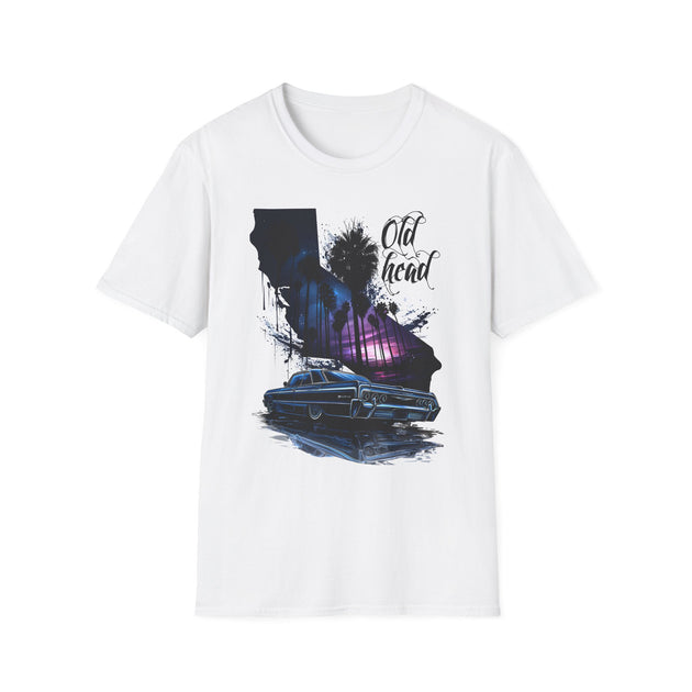 Vintage California Old Head Design T-Shirt, Retro Car Tee, Unisex Softstyle Shirt. This T-Shirt exudes a retro vibe perfect for vintage car enthusiasts and those who love a classic look. Great for casual outings and can be paired with jeans or shorts. Ideal for adults, suitable for everyday wear or as a unique gift for birthdays or special occasions.